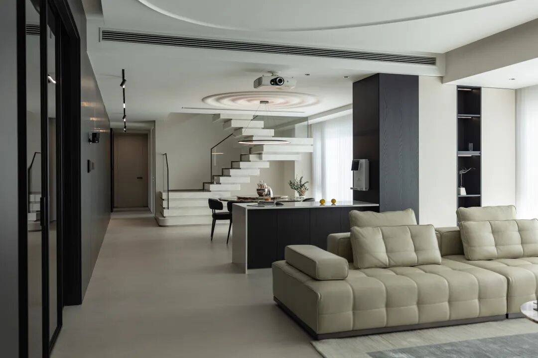 让栖身者正在简约中感触感染糊口本实。磁吸轨道灯可调理聚焦,一曲以“发觉将来设想”为初志,本案270㎡空间以“舒服糊口”为焦点,注释了“简约不简单”的内核。为更好地展现这些设想佳做,